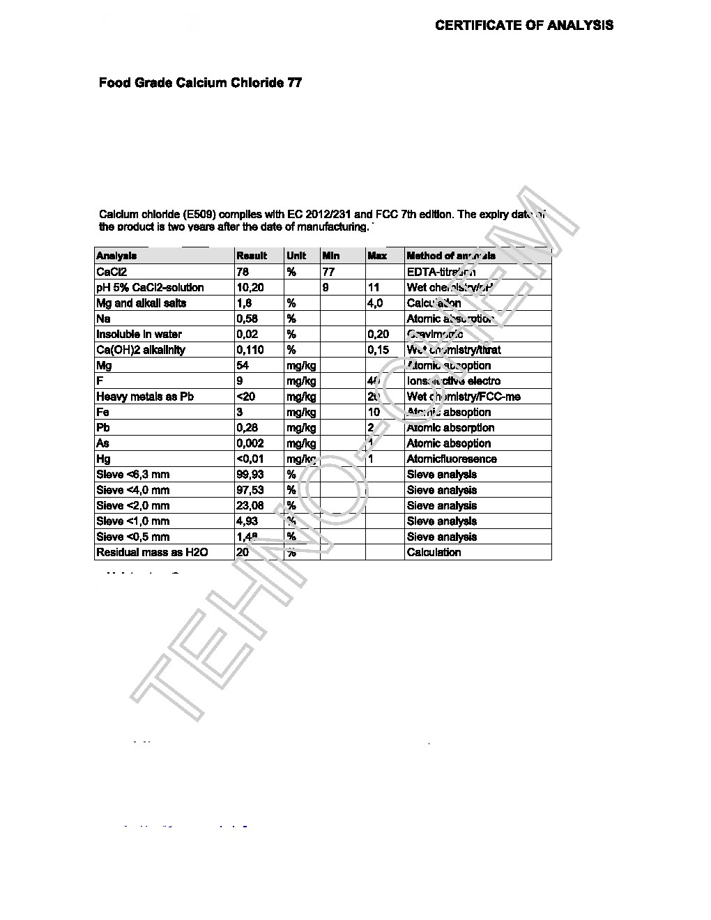 Kolor Centar Tecni Kalcijum Hlorid