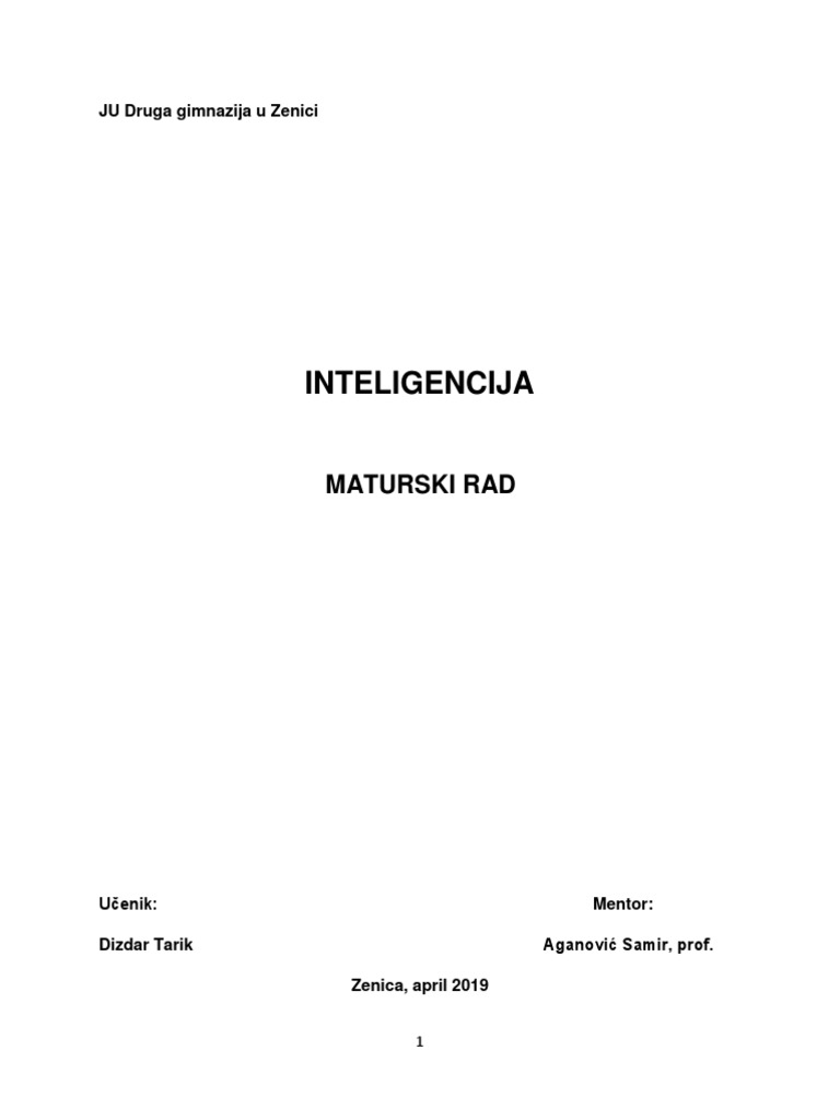 Inteligencija Maturski Rad