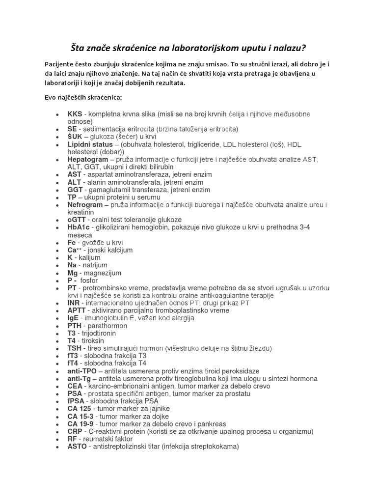 Da se ne biste pitali šta predstavljaju nerazumljive skraćenice pored brojki na papiru koji vam je dao laborant.
