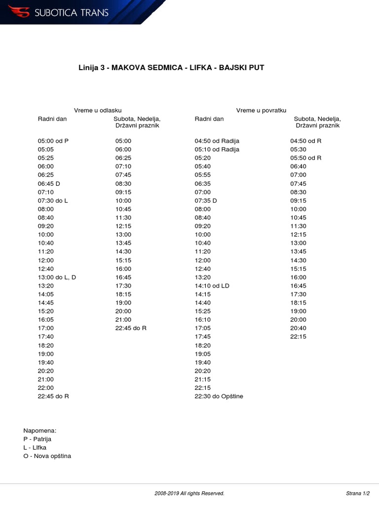 3 Trasa Redovi Voznje Stajalista I Mape Bajski Put Do Radija Subotica