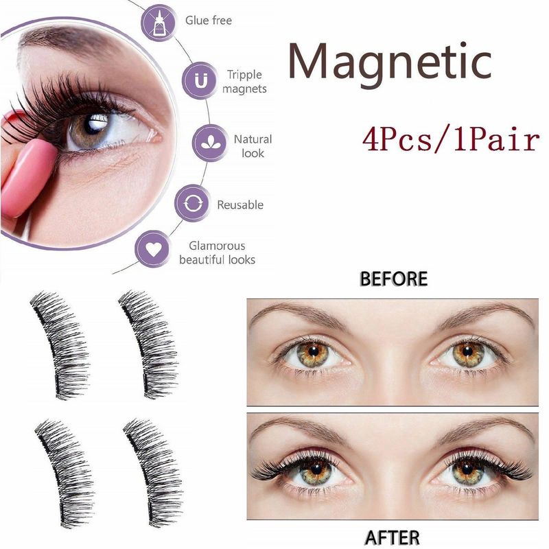 Magnetic Eyelashes 3 Magnet Glue Free 3d Reusable Full Size Premium Quality Natural Look Best False Lashes 4 Pieces Set False Eyelashes Aliexpress