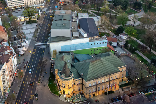 Belgrade Serbia March 31 2019 Belgrade Panorama Photographed From The Air The Photo Shows Yugoslav Drama Theatre Students Cultural Center Manjez Park And Cvetni Trg Or Flower Square Buy This Stock