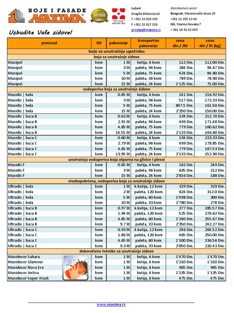 Maxima Lucani Fasade Proizvodnja Boja I Fasada Lakovi Farbe Katalog Boje U Lucanima Boje I Lakovi Farbare Lucani Dr Dragise Misovica 16 Lucani Srbija