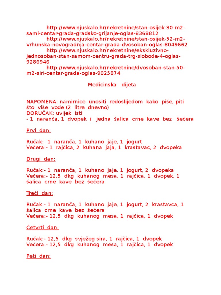 Posle dve nedelje napravite pauzu od dve nedelje ali planirajte svoje menije sa spiskom dodatnih namirnica koje su dozvoljene i više kalorija. Svaki dan se ceo jede samo ta namirnica koja je na spisku. Medicinska dijeta recepti i jelovnik za 5 dana. Počela sam sve više šetati jela samo povrće i voće.