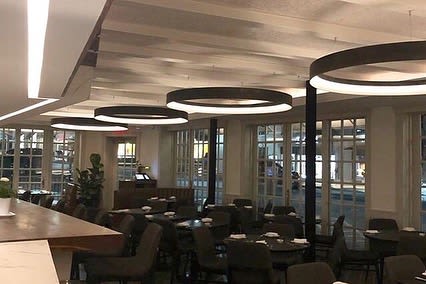 Custom Round Aluminum Chandelier By Cp Lighting Seen At Mediterraneo Restaurant Greenwich Wescover