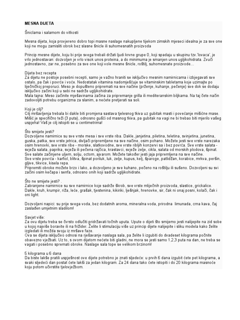 Mesna Dijeta Mrsavljenje Forum